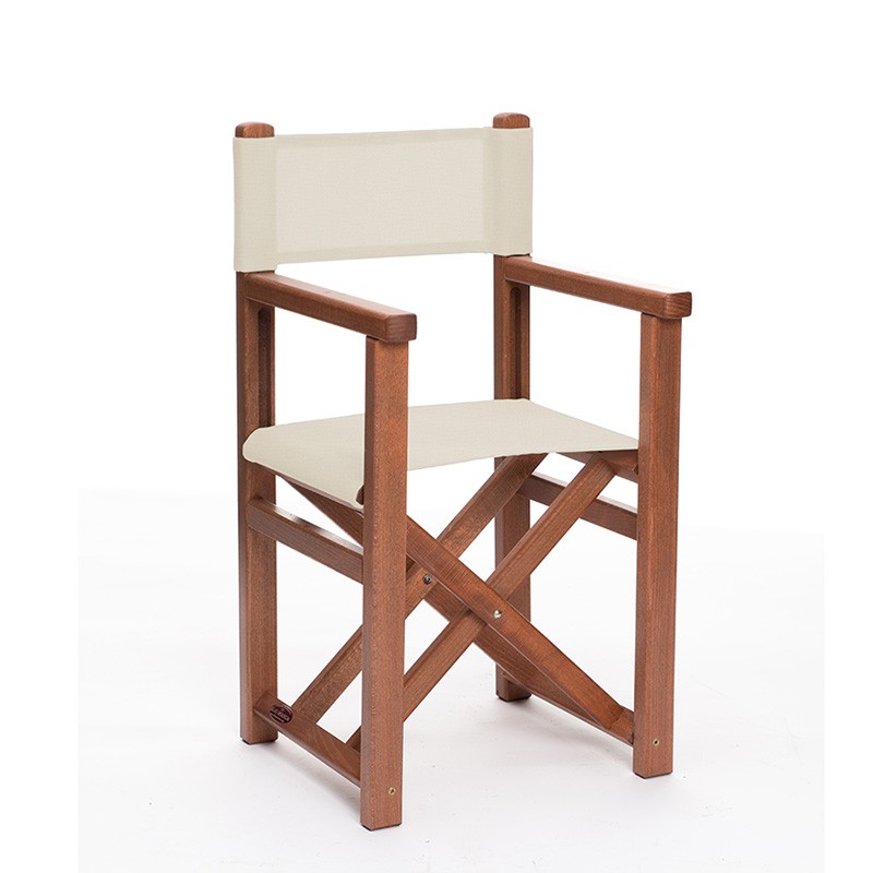 Der Kinder-Regiestuhl ist mit ökologischem Lack auf Wasserbasis behandelt, ideal für den Außenbereich.