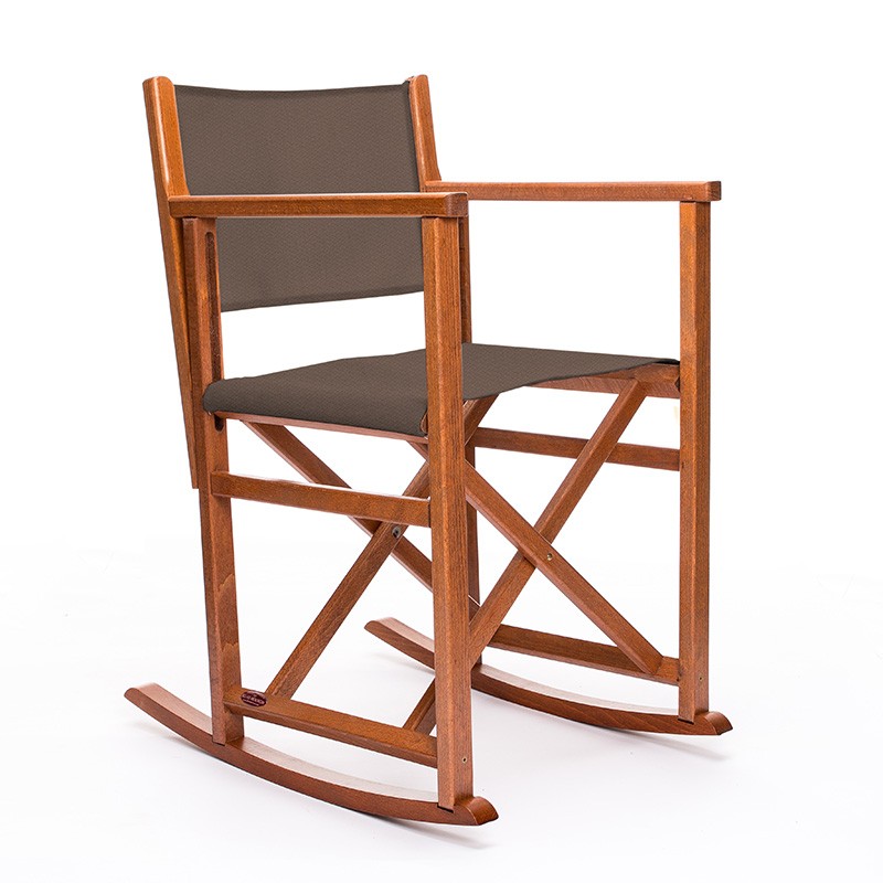 Auténtico BALANCÍN MENORQUÍN Modelo B en madera maciza de haya fabricado artesanal e íntegramente en Menorca. Color de la madera BRANDY. Tela en lona acrílica o en screen batyline (microperforado en PVC, suplemento).