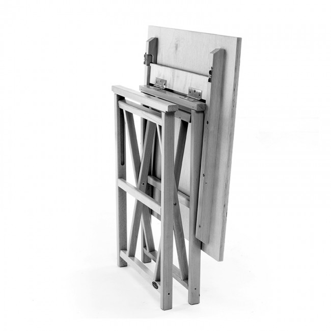 La MESA MENORQUINA modelo T60 es muy útil y robusta. El modelo T70 abierto ocupa 70 cm x 65 cm con una altura de 72 cm y pesa 10 Kg.