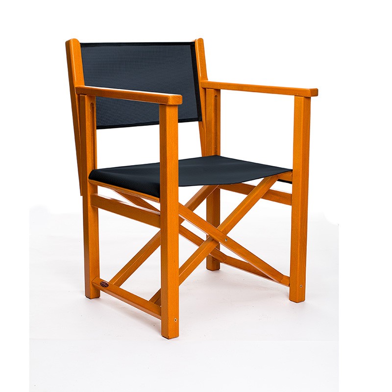 Auténtica SILLA MENORQUINA Modelo K (XXL - KING SIZE) en madera maciza de haya fabricada artesanal e íntegramente en Menorca. Color de la madera MIEL. Tela en lona acrílica o en screen batyline (microperforado en PVC, suplemento).