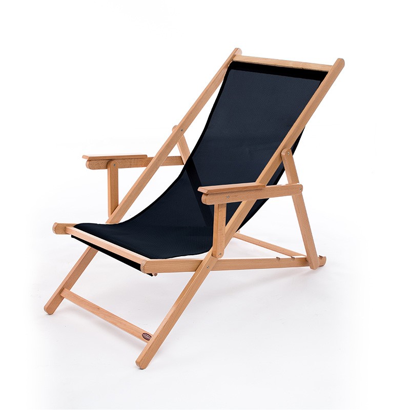 Auténtica HAMACA MENORQUINA CON BRAZOS Modelo HB en madera maciza de haya fabricada artesanal e íntegramente en Menorca. Color de la madera CRUDO, SIN BARNÍZ. Tela en lona acrílica o en screen batyline (microperforado en PVC, suplemento).