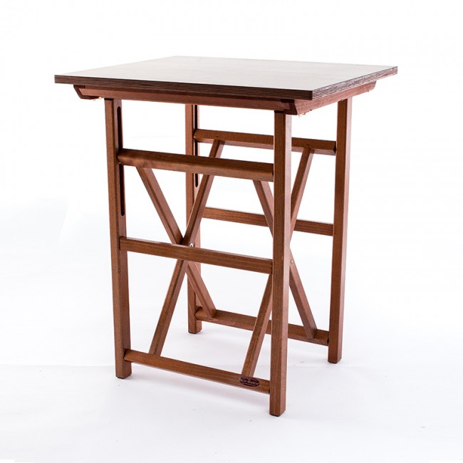La TABLE MENORCAINE modèle T60 est très utile et robuste. Une table modèle T60 ouverte occupe 60 cm x 50 cm avec une hauteur de 72 cm et pèse 10 Kg.